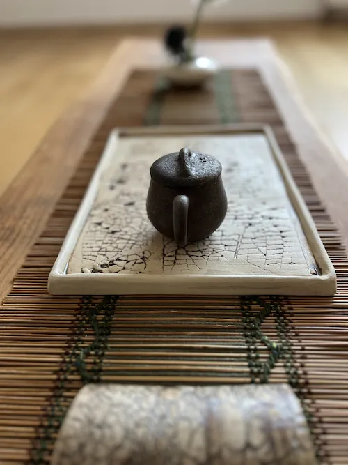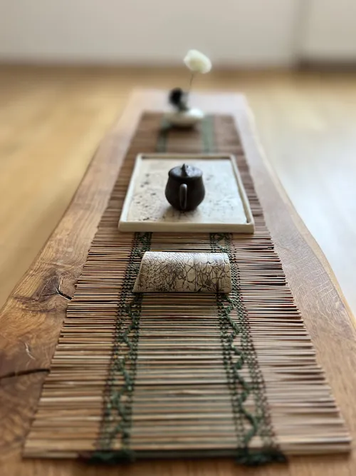 Dieser Bambus-Chabu ist eine Auftragsarbeit von @alinazakharova.art – lieb gewonnene Freundin und Tee-Schwester. In sorgfältiger Handarbeit produziert Alina Bambus-Chabus nach einem japanischen Vorbild. Es braucht bis zu 30 Stunden, um so ein Chabu herzustellen.