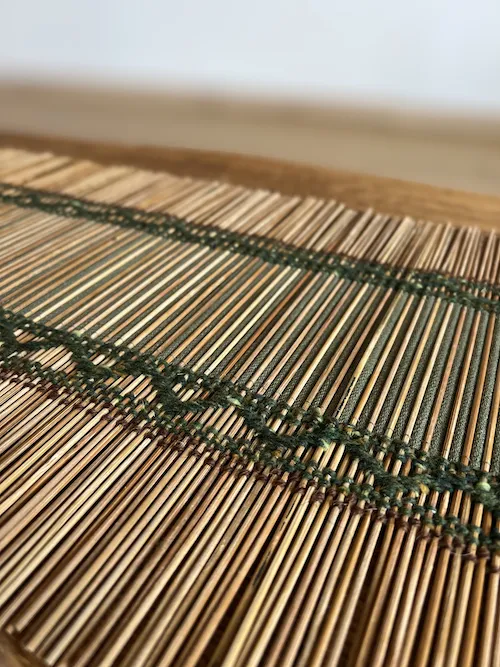 Kunstvoll geflochten aus Bambus, Baumwolle und Wollfaden in grün und braun verkörpert dieser Chabu für mich den Frühling. Der Chabu ist zweiseitig nutzbar, das Flechtmuster unterscheidet sich leicht. Der Bambus-Chabu kommt zu dir in einem farblich passenden Baumwolltuch, das du auch für deine Chaxi (Tee-Szene) verwenden kannst.