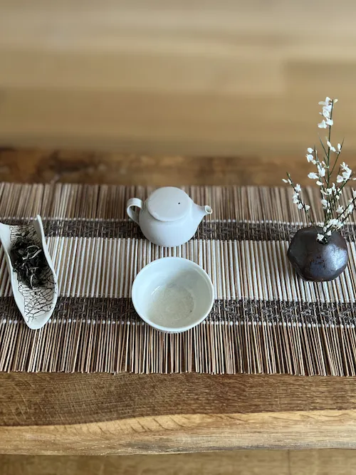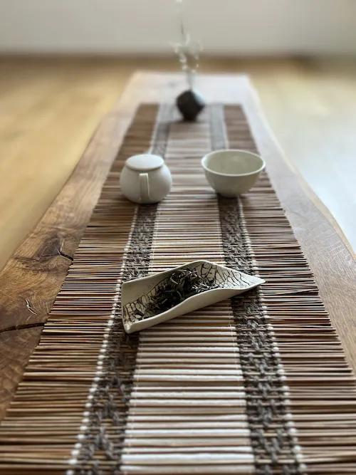 Dieser Bambus-Chabu ist eine Auftragsarbeit von @alinazakharova.art – lieb gewonnene Freundin und Tee-Schwester. In sorgfältiger Handarbeit produziert Alina Bambus-Chabus nach einem japanischen Vorbild. Es braucht bis zu 30 Stunden, um so ein Chabu herzustellen.