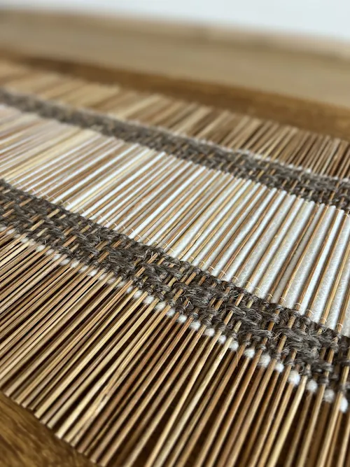 Kunstvoll geflochten aus Bambus, Baumwolle und Wollfaden in weiss und braun strahlt dieser Chabu Frische und Klarheit. Der Chabu ist zweiseitig nutzbar, das Flechtmuster unterscheidet sich leicht. Der Bambus-Chabu kommt zu dir in einem farblich passenden Baumwolltuch, das du auch für deine Chaxi (Tee-Szene) verwenden kannst.
